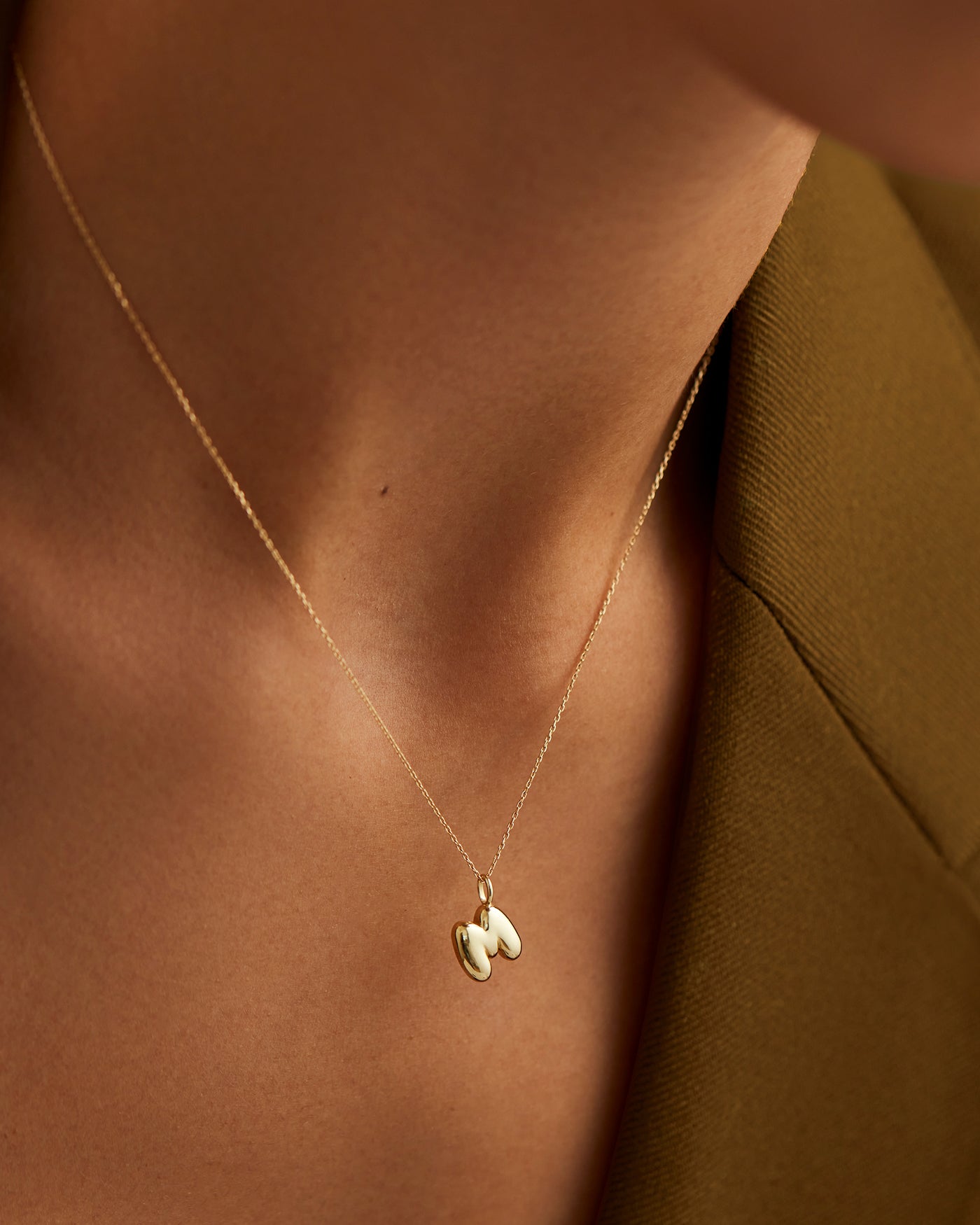 14K Gold Bubble Letter Necklace - M