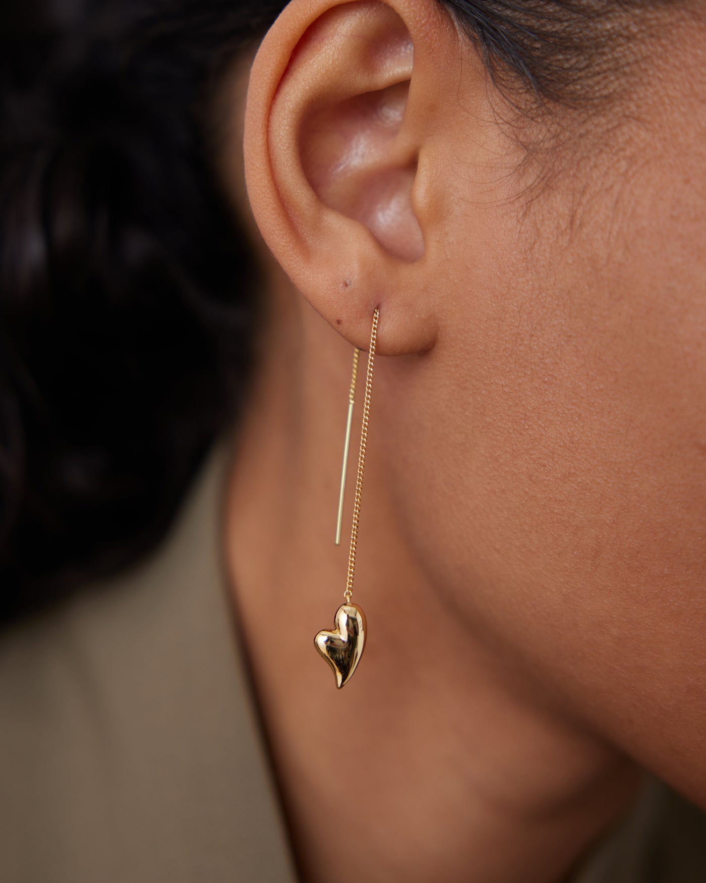 Puffy Heart Threader Earrings