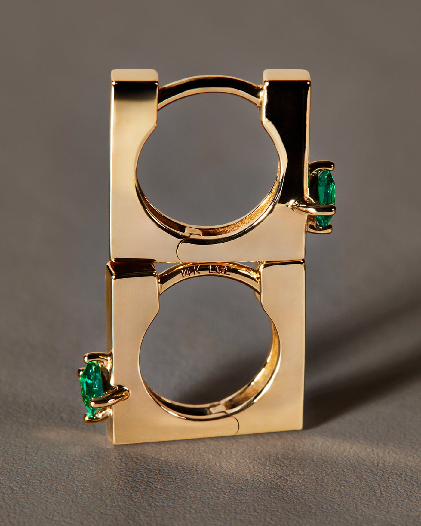 14K Gold Lab Grown Emerald Huggie Earrings