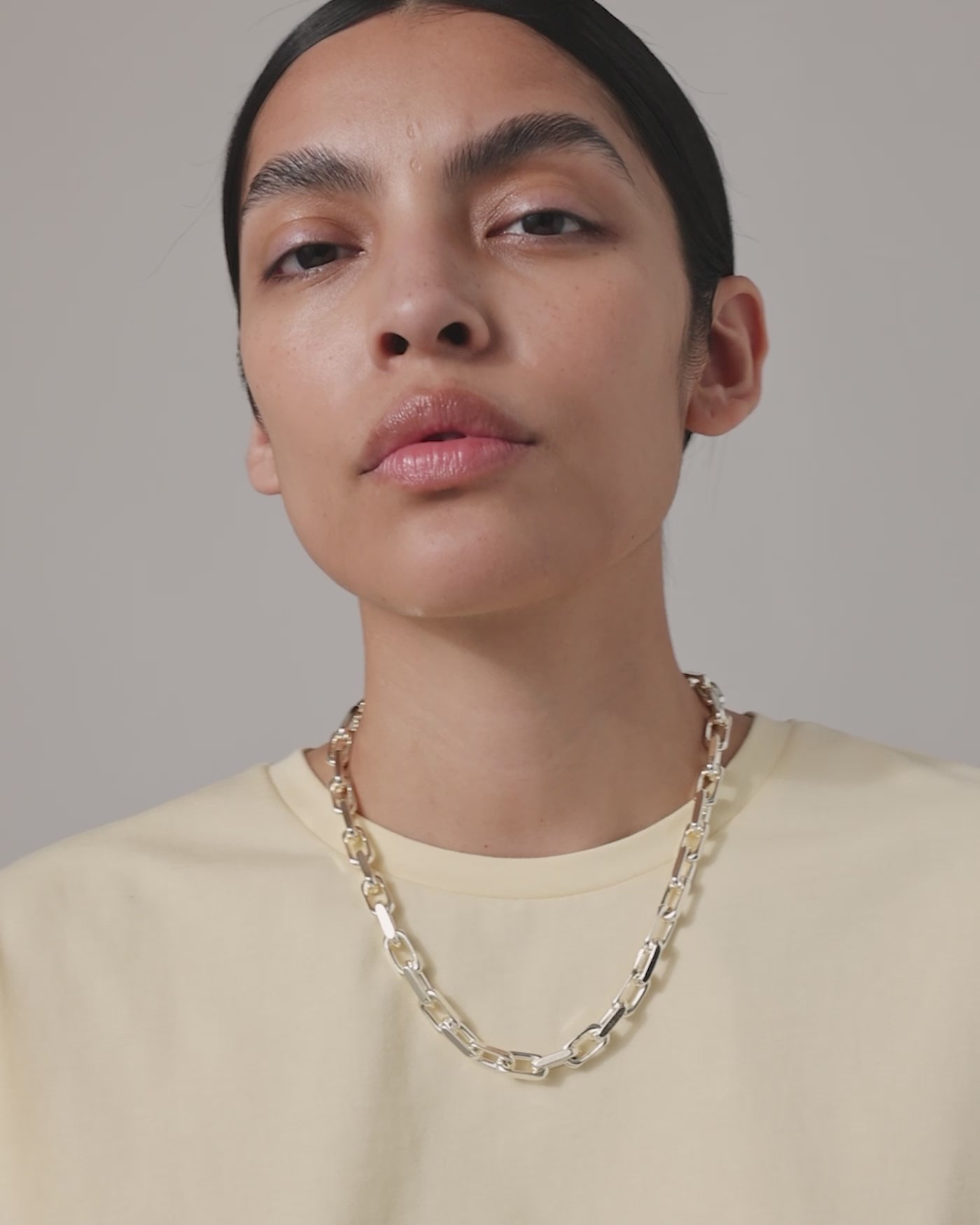 Crisp, faceted links secure around the neck with a hidden egret closure. Finished in high-polish silver.